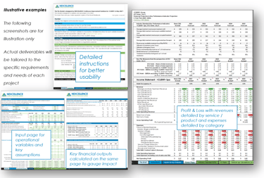Sample quantitative forecasting scenario analysis tool (click above for details), integrating operational and contractual assumptions with financial outputs. Click to read more about our experience therewith.