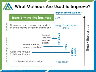 Process improvement methods like Lean and Six Sigma are introduced to serve organizational strategy and objectives. When properly implemented, the organizational culture is transformed to a high performance culture.