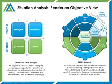 We follow gold-standard frameworks and methods in strategic planning and execution